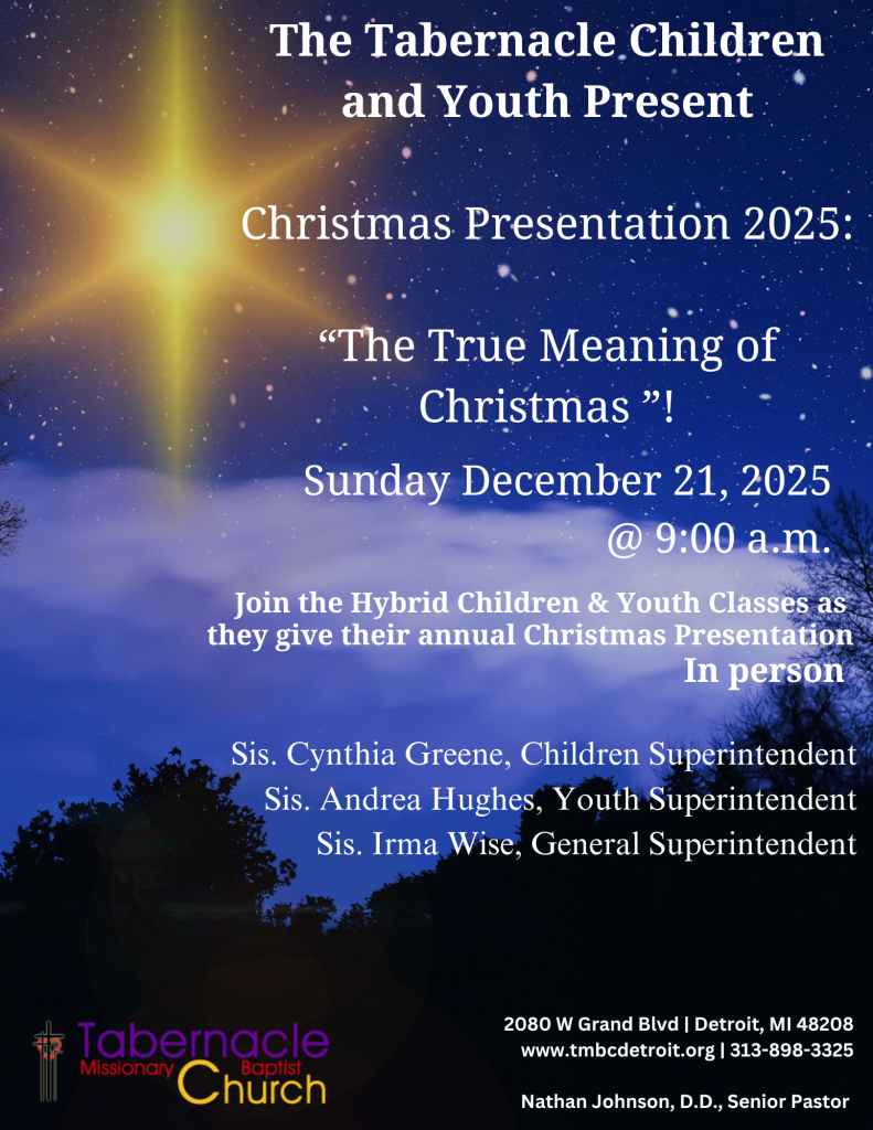 Twitter: @TMBCDetroit Facebook: Tabernacle MBC Detroit Email: contact@tmbcdetroit.org