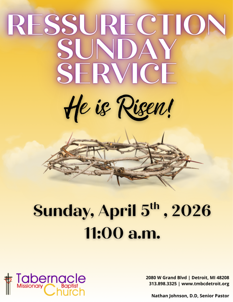 Tabernacle Missionary Baptist Church 2080 W Grand Blvd Detroit, MI 48208 (313) 898-3325 contact@tmbcdetroit.org